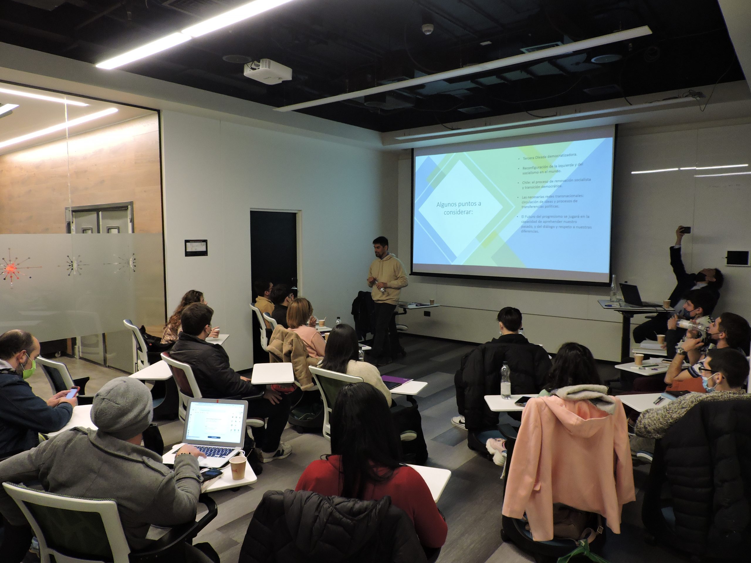 Por otra parte, el responsable de dar cierre a la lección fue el académico y magister en historia de la Universidad de Chile, Francisco Melo, el cuál planteó y expuso la temática “Pensar de América Latina y el futuro del Progresismo”, acompañado de los nuevos valores como la libertad, feminismo, paridad, entre otros.